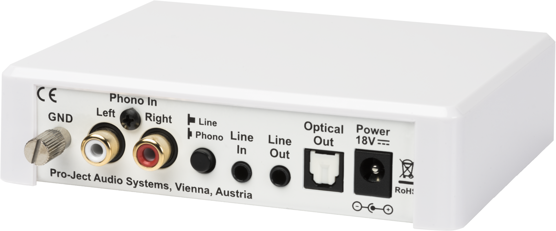 כניסות: 1× Phono RCA, 1× Line In 3.5mm